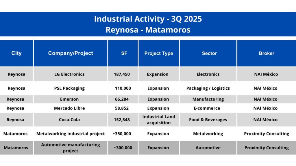 As 2025 enters its final weeks, industrial markets in northern Tamaulipas, Mexico, are closing the year from different positions, with Reynosa coming off a busy third quarter marked by strong demand for factory and warehouse space, while Matamoros moves more cautiously as companies time their next investment decisions.
